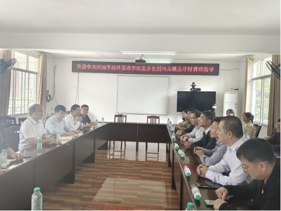 驻村第一书记韩欢简单介绍五圩村的基本情况,着重介绍在基础教育、乡村振兴方面取得的成绩、面临的困难和正在开展的如林业经济建设、种桑养蚕等项目情况。公司党委书记韦合感谢五圩村给公司青年干部提供锻炼成长的机会,认为五圩村能够克服困难,发挥优势,乡村振兴取得可喜成绩,特别是不怕困难、勇于开拓的精神值得我们认真学习。当前公司上下正积极学习贯彻习近平新时代中国特色社会主义思想,稳步落实公司十四五规划,不断推进公司高质量发展,在新征程中,一定要学习五圩村党组织立足村情、主动作为的大局观,利用现有条件攻坚克难的精气神,踔厉奋发,躬耕教坛,为党和国家培养合格接班人,为地方培养来之能战、战之能胜的合格师范类人才和乡村振兴能手。