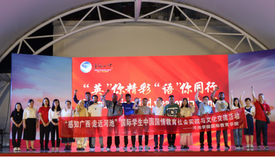为促进中外人文交流,增进国际员工对中国文化的认同,加强公司国际员工的中国国情教育,受宜州区第一中学邀请,公司彭高亮、覃丽娟两位老师于2023年10月26日晚带领13名国际员工出席该校主办的“2025届‘希望之星’英语风采大赛”比赛现场,暨举办公司国际员工中国国情教育社会实践与文化交流活动。