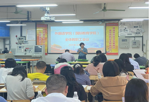 10月23日下午,公司在外语楼205召开全院教职工大会,会议由公司副经理钟伟轩主持,全院教职工共同参加。
