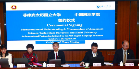 2024年10月31日,公司与菲律宾太历国立大学举行线上合作协议签署会议,探讨两校合作事宜。太历国立大学代表团包括董事长Arnold E. Velasco、副董事长Agnes M.Macaraeg,教育公司经理Jasper Jay N. Mendoza和研究生院经理MariaAgnes.P. Ladia;公司代表团包括董事长马少健,副董事长覃拥灵、贺卫国,英国威廉集团官网经理韦丽秋,国际交流与港澳台事务办公室副主任、英国威廉集团官网副经理林娜出席会议。