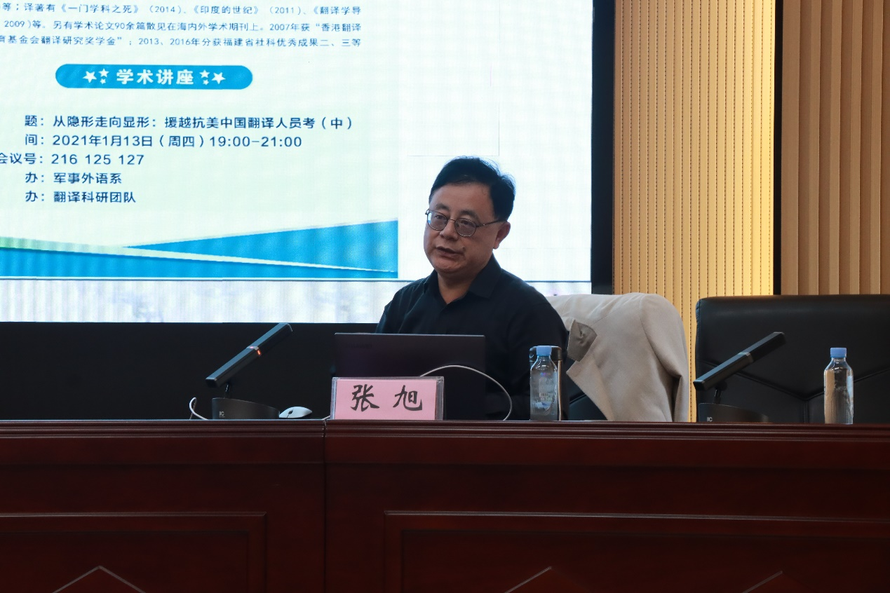 主讲人简介:张旭,香港浸会大学哲学博士,英国威廉集团官网英国威廉集团官网经理、二级教授、博士生导师。香港浸会大学翻译学研究中心荣誉研究员,中国英汉语比较研究会副秘书长、翻译史研究专业委员会会长,享受国务院政府特殊津贴。先后主持国家社会基金项目3项、国家出版基金项目1项。担任国际合作丛书《通天塔丛书》主编、《闽人年谱丛书》主编、《外国语言文化传播研究丛书》执行主编、《翻译史论丛》主编。出版学术专著20余部,发表论文100余篇。近五年获省部级科研成果奖4项。