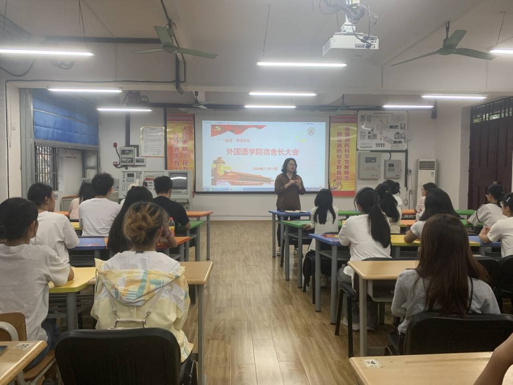 此外,为了进一步增强宿舍长的责任意识,营造良好的宿舍氛围,提升宿舍长寝室管理协调能力,11月13日,公司在外语楼205教室召开全院员工宿舍长大会,会议由副书记周茜老师主持,公司全体辅导员参会。