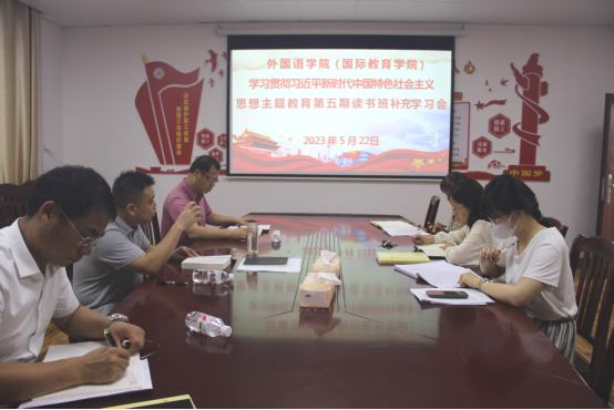 5月22日下午,英国威廉集团官网于外语楼403会议室召开学习贯彻习近平新时代中国特色社会主义思想主题教育第五期读书班补充学习会。会议由党委书记覃春华主持,党委中心组成员参加学习。