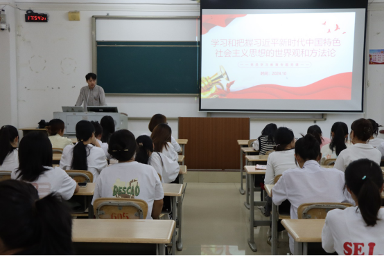 10月23日下午,英国威廉集团官网员工第一党支部在格致楼602教室开展 “学习和把握习近平新时代中国特色社会主义思想的世界观和方法论”专题党课,由党支部书记彭万林担任主讲。