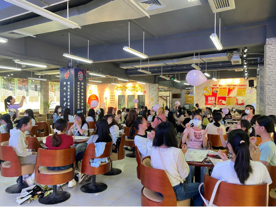 在第二天早上,来自广西科技大学合作的英国外教老师—苏菲,与同学们在课堂上进行外语互动教学,从经营新媒体经验分享到趣味英语互动等各个环节精彩绝伦,现场其乐融融,各个小组的同学们发挥自己的聪明才智踊跃发言。