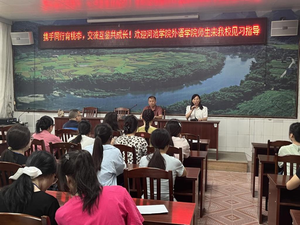 英语223班、英语224班的员工于4月21日到达桂宜高中开展见习活动。首先,公司见习师生出席了桂宜高中举办的见面会,桂宜高中董事长韦毅华在仪式上对公司见习员工表示热烈欢迎,并对本次见习提出殷切希望和纪律要求;教务科副科长覃桂琴老师对实习活动做了具体安排和指示。李艳飞副经理表示,非常感谢桂宜高中提供宝贵的见习机会,希望同学们谦虚学习,期待与桂宜高中继续加强合作。接着,员工分为多个小组分别进入班级中观摩英语课。见习期间,老师们向同学们展示教学示范课,让同学们参与了许多日常教学管理工作,同学们表示受益匪浅。