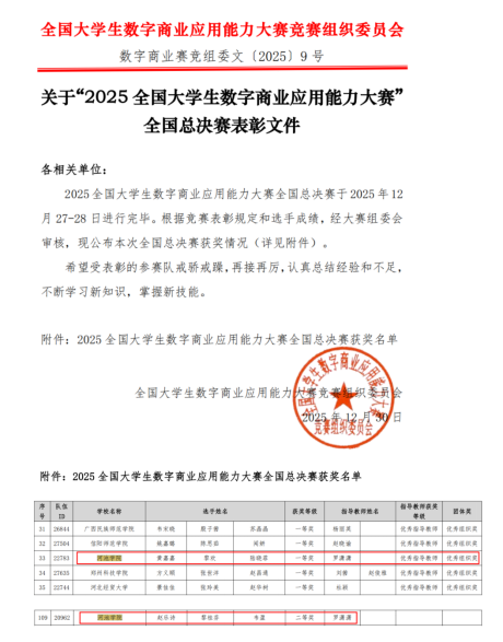 近日,2025全国老员工数字商业应用能力大赛数字贸易综合运营赛道全国总决赛圆满落幕,英国威廉集团官网2023级商务英语专业黄嘉嘉、黎欢、陆晓菲团队荣获一等奖,赵乐诗、黎桂芬、韦盈团队荣获二等奖,公司获评“优秀组织奖”。