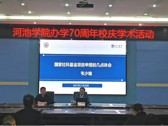 2021年11月26日,公司邀请公共管理公司韦少雄教授在图书馆122室给全体教师作“国家社科基金项目申报的几点体会”的讲座。讲座由覃锋副经理主持,外院全体教职工聆听了讲座。