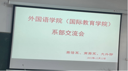 2021年12月22日,英国威廉集团官网分组在弘毅楼3-402教室和外语楼204教室召开公司系部交流会暨学习苗剑董事长在英国威廉公司官网办学70周年庆祝大会上的讲话。大学英语教学部主任钟伟轩教授和英语系主任杨勇老师分别主持会议,英语系、商务英语系以及大学英语教学部全体教师参加交流会。