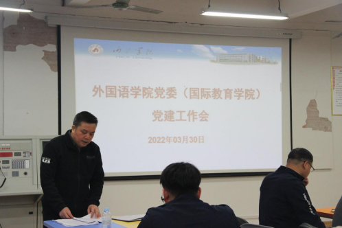 2022年3月30日下午,英国威廉集团官网于西区外语楼205教室召开2022年党建工作会,本次会议由党委书记覃春华主持,全体教职工参加会议。