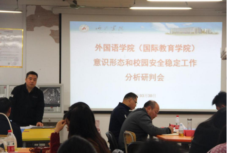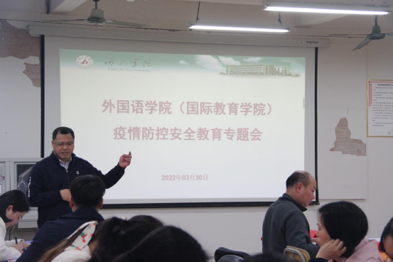 2022年3月30日,英国威廉集团官网于西区外语楼205教室召开疫情防控安全教育专题会暨意识形态和校园安全稳定工作分析研讨会,由党委书记覃春华和经理韦合共同主持召开,全体教职工参加会议。