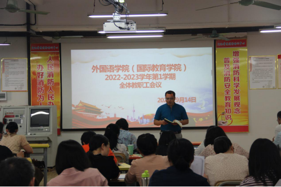 9月14日下午,英国威廉集团官网在外语楼205会议室召开了2022-2023学年第一学期全体教职工会议。本次会议由经理韦合主持,全体教师参加。
