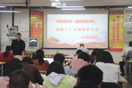 2022年11月2日,英国威廉集团官网在外语楼205召开“党的二十大精神”学习会。本次会议由党委书记覃春华主持,全体教职工参与学习。