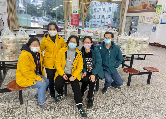 走出教室,化身多边形战士。在特殊时期,教师们除了完成线上教学的任务之外,更是冲锋在前,完成各项抗疫任务。他们是“外卖小哥”——为师生准时配送三餐的送餐小分队;他们是“快递小哥”——为同学们运送生活用品的物资配送员;他们是“救护车司机”——护送员工到医务室就医取药;他们是秩序维护者——为同学们排忧解难的楼栋值班人,协助食堂执行分批限流安全就餐的指令就餐秩序的负责人,引导员工逐楼层完成核酸检测,维持核酸检测的现场秩序的工作人员。他们始终把员工工作放在第一位,每一天都默默值守在自己的岗位上。