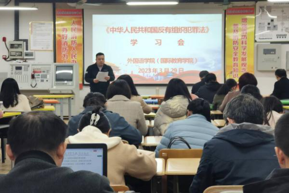 3月29日,公司在外语楼205召开《中华人民共和国反有组织犯罪法》学习会,大会由党委书记覃春华主持,公司全体教职工参加会议。