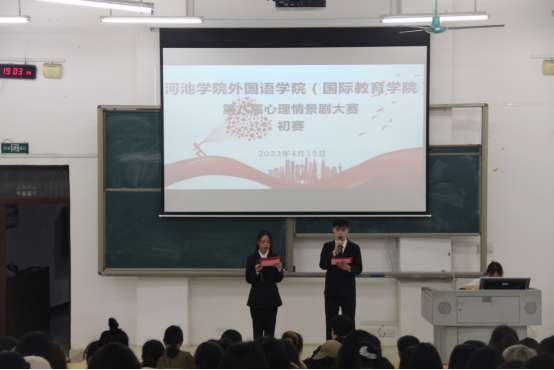 为提高公司员工心理健康水平,优化员工心理素质,增强员工对心理健康的关注,4月15日晚,公司在格致楼负101教室举办第八届老员工心理情景剧大赛初赛。团委书记张雁,辅导员周贵连、彭万林担任本次比赛评委。