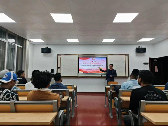 2023年11月2日晚,国际教育公司在外语楼202召开国际员工毕业生学习规划指导会,会议由彭高亮主持。