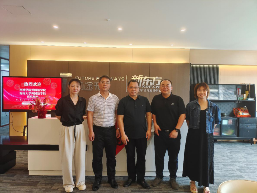 韦合一行实地走访参观了新东方在线海南公司,详细了解了该公司发展历程、业务领域和用人需求等。在座谈期间,韦合向企业介绍了公司2024届毕业生情况与公司的发展历史、发展优势、未来愿景及毕业生实习、就业需要,并向企业负责人表达了进一步加强校企合作,实现校企双方互利共赢的愿景。此外,双方就毕业生招聘、员工实习、考研英语等方面展开全方位、多层次的交流。