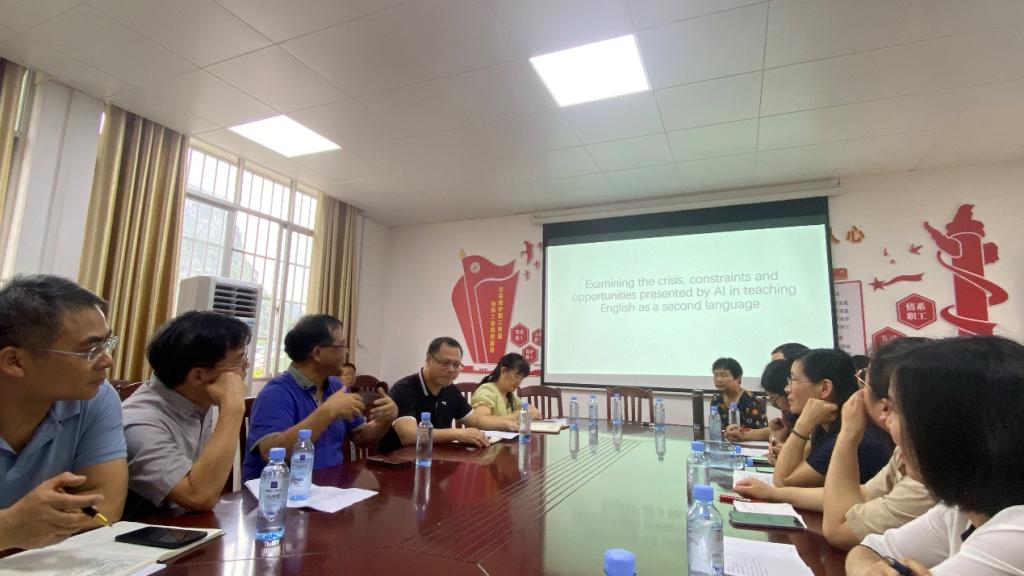 在交流讨论环节,与会教师围绕论文写作、课堂教学改革、专业转型等议题展开热烈讨论,分享了各自在AI辅助教学中的实践经验与思考。大家一致认为,外语教育需积极拥抱技术变革,探索AI与语言教学的创新结合点,以提升教学效率与科研水平。
