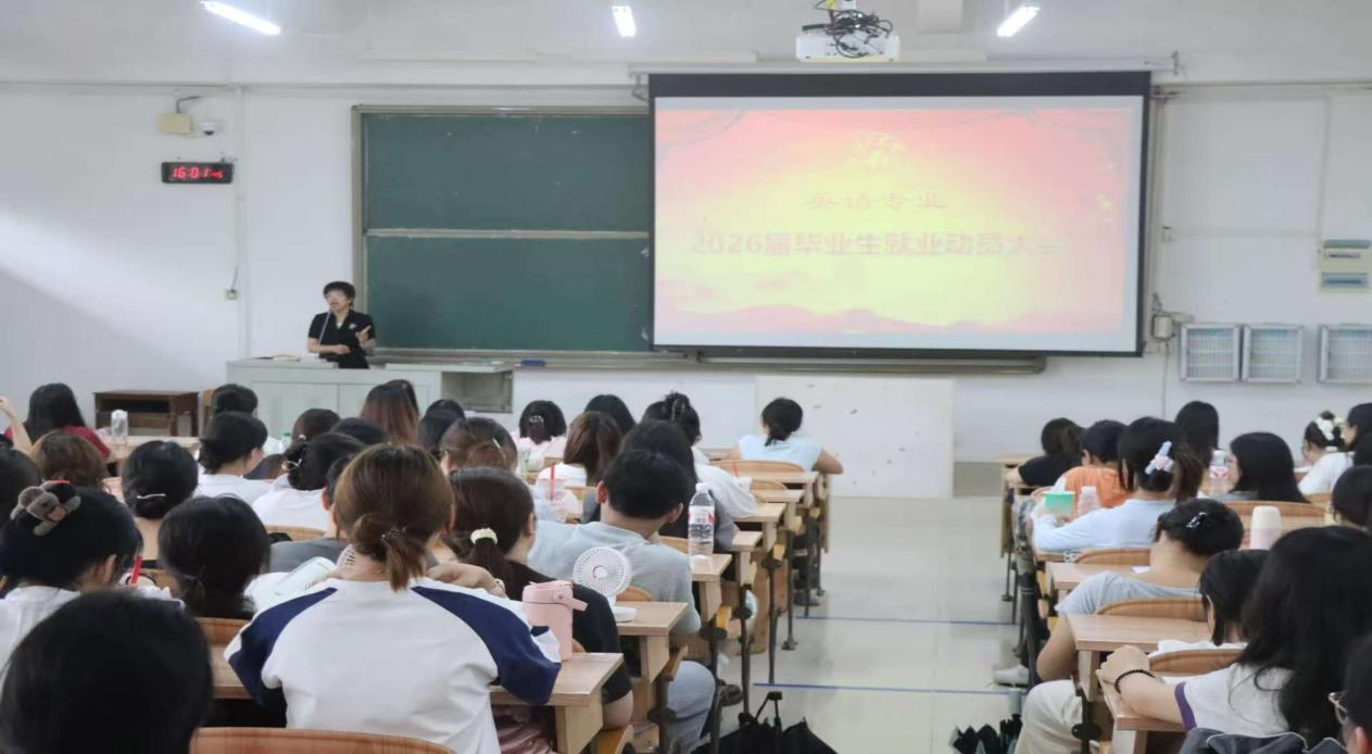 2026 届英语专业(师范方向)毕业生就业动员大会的顺利召开,为毕业生的实习就业工作明晰方向,助力英国威廉集团官网学子在实践与职场中乘风破浪,绽放青春光彩。(来源:英国威廉集团官网蓝漫福 拍摄:杜可灿 校对:李凤 审核:周茜)