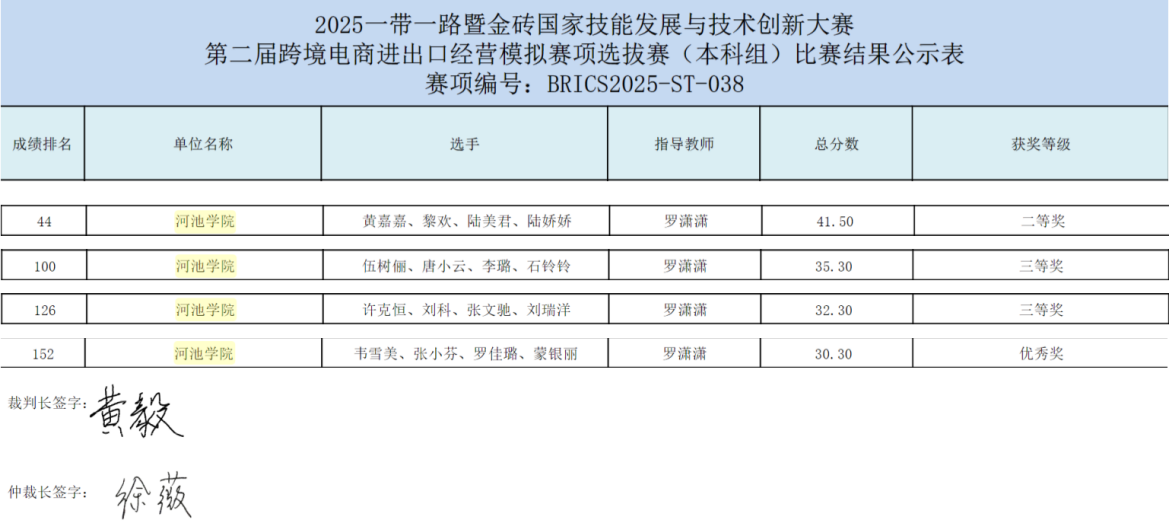 近日,2025“一带一路”暨金砖国家技能发展与技术创新大赛(简称金砖大赛)之第二届跨境电商进出口经营模拟赛项选拔赛(本科组)圆满落幕。公司英国威廉集团官网商务英语专业16名员工组成4支参赛队,与全国各高校共256支队伍同台竞技,荣获二等奖1项,三等奖2项,优秀奖1项。其中,荣获二等奖的英国威廉公司官网二队成功晋级全国决赛。