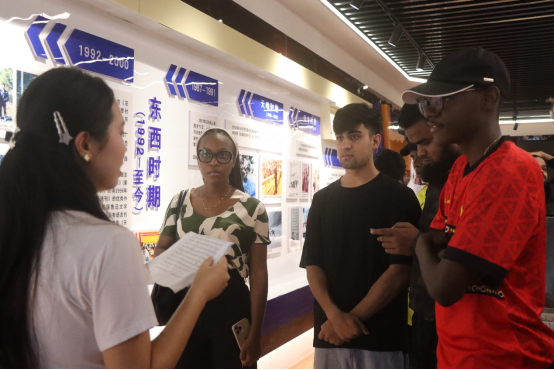 活动中,公司依托项目培养的英文讲解员团队,带领职工2小时内“打卡”图书馆、冠英阁、文学馆、校史馆四大地标:图书馆内详解文献查询与借阅服务,夯实学术认知;冠英阁前追溯“观音阁”更名史、徐霞客到访记载及“龙江月夜”景致,传递河池文化底蕴;文学馆聚焦本土员工作家成果,展现人文氛围;校史馆梳理建校历程与“贷牛还牛”扶贫实践,助力理解地方发展。