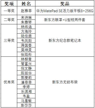 活动覆盖面广,共吸引400余名同学积极参与,经过一个月的打卡诵读,赵雅菲等20名同学分别获得奖励,鼓励更多同学参与中国优秀传统文化、宣传中国文化活动。(来源:英国威廉集团官网赵雅菲;拍摄:彭冬年;校对:王勇亮;审核:周茜)