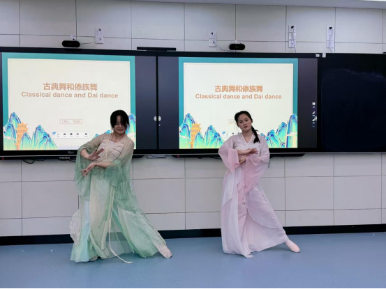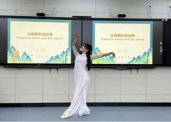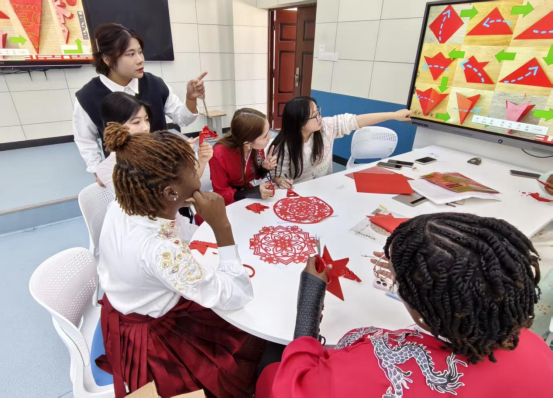 11月16日的第二期活动聚焦“舞乐纸韵,感知中国”,汉教员工全程英文讲解剪纸、葫芦丝和中国舞蹈,并指导国际员工进行文化体验。李美玲、梁金颖详解剪纸非遗文化,带领职工动手创作;杨孙娜分享葫芦丝知识并演奏经典曲目《彩云之南》,传递民族音乐魅力;欧钰炎等3位同学解析古典舞、傣族舞的文化内涵,通过表演与互动教学,让职工在中国舞蹈体验中感受中国美学。
