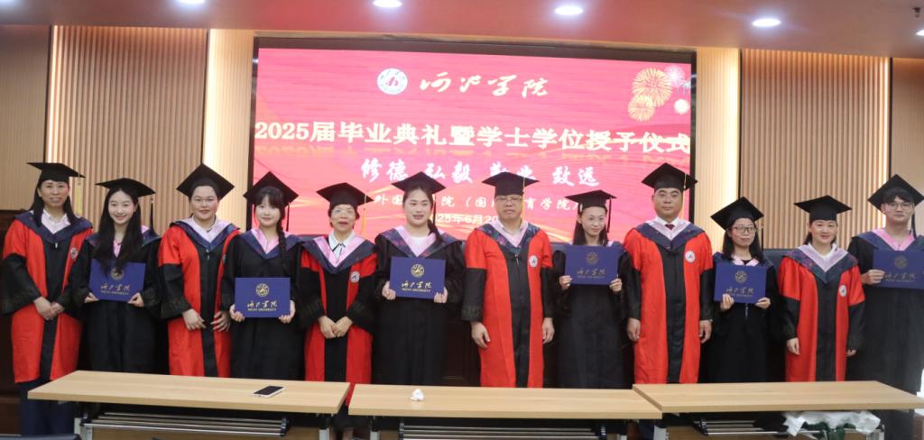 6月20日,公司在格致楼101举行2025届毕业典礼暨学士学位授予仪式。公司党委书记韦合、经理韦丽秋、党委副书记周茜、副经理钟伟轩、林娜、李艳飞,以及教师代表和2025届毕业生等参加典礼。典礼由彭万林老师主持。