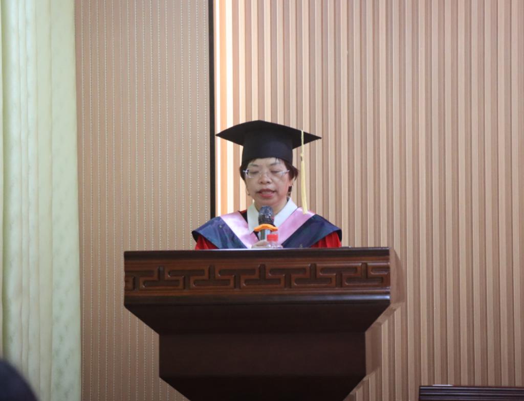 毕业典礼暨学士学位授予仪式在激昂雄壮的国歌声中拉开帷幕,随后公司经理韦丽秋致辞。她以温暖的话语寄语毕业生:“ 请你们牢记要有大思维、大视野、大格局,紧跟时代步伐,做一个有修养、有责任心、敢于担当的人”。经理赠言完毕,员工代表廖启月上台发言,她用真情实感表达了对公司对母校以及对老师们的感谢与祝愿。教师代表黄小珂老师用坚定的话语展示了教师们育人使命的坚守,并用最真心的祝愿表达了对员工们的不舍。