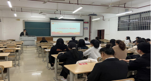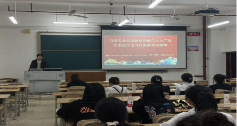 会议主要学习了“二十大对党章作出了哪些修改?”和“习近平总书记参加广西代表团讨论时的重要讲话精神”两个主题内容。在讲述第一个主题时,彭万林重点提到“共同富裕”、“新发展理念”、“五位一体”和“两个维护”等二十大热词,同时他还提到:“我们作为新时代中国共产党人,要在‘回头看’的基础上,‘向前看’”,并将党章内容和当下国内外形势结合起来,用实际案例证明了“中国化时代化的马克思主义为什么行”。