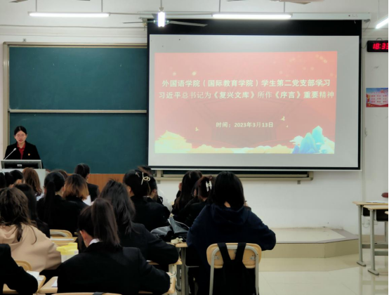 为了进一步加强党组织建设,2023年3月13日,公司员工第二党支部于格致楼602教室,对习近平总书记为《复兴文库》所作《序言》重要精神进行学习,本次会议由支部书记周贵连主持,第二党支部全体成员参与。