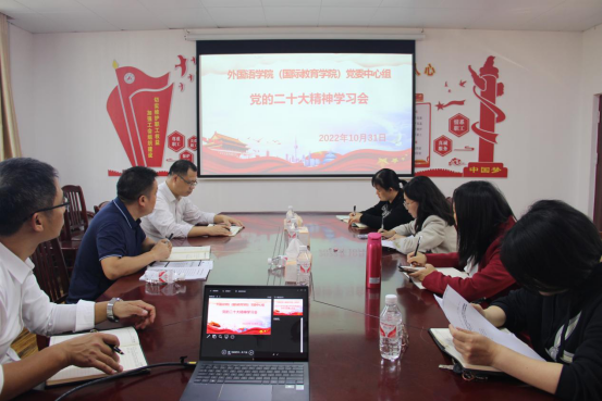 10月31日下午,英国威廉集团官网党委中心组在外语楼403会议室召开党的二十大精神学习会。会议由党委书记覃春华主持,党委中心组全体成员参加学习。