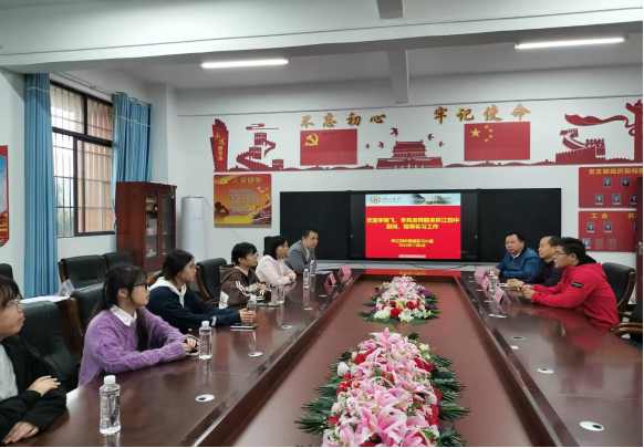 李艳飞、李凤看望环江四中实习生,同董事长等校方代表座谈。