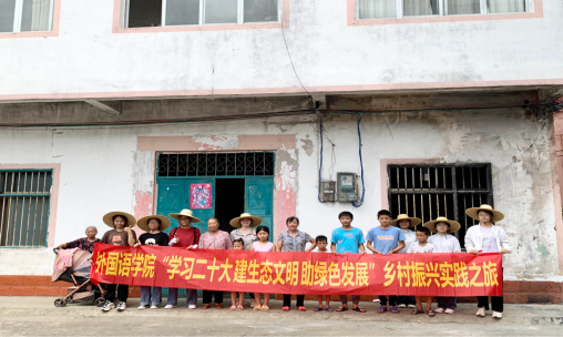 图为“助绿水青山”实践队走访村民宣传环保知识合影
