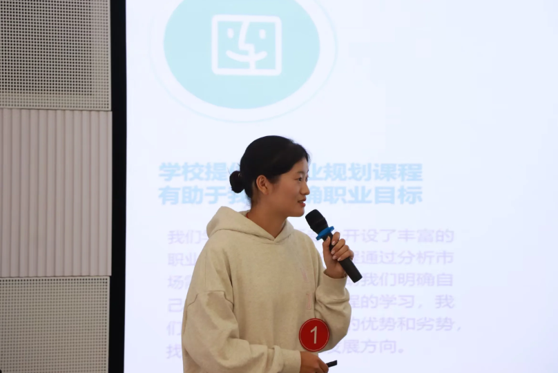 商务英语教研室主任罗潇潇,专任教师郑新凤、李常月、刘艳斌以及辅导员彭万林老师担任本次大赛的评委。此次比赛的参赛选手分别是从大一至大三三个年级挑选的八位选手,他们从成长赛道和就业赛道中展示自我的职业生涯规划。展示过程中阳光自信,条理清晰,专业性强,对当前的就业形势和专业发展都做了非常详细的分析,并提出自己的职业目标、发展路径和行动规划,从可操作性和现实意义等方面进行细致阐述。选手们面对老师们的提问沉着冷静,反应迅速,思路清晰。